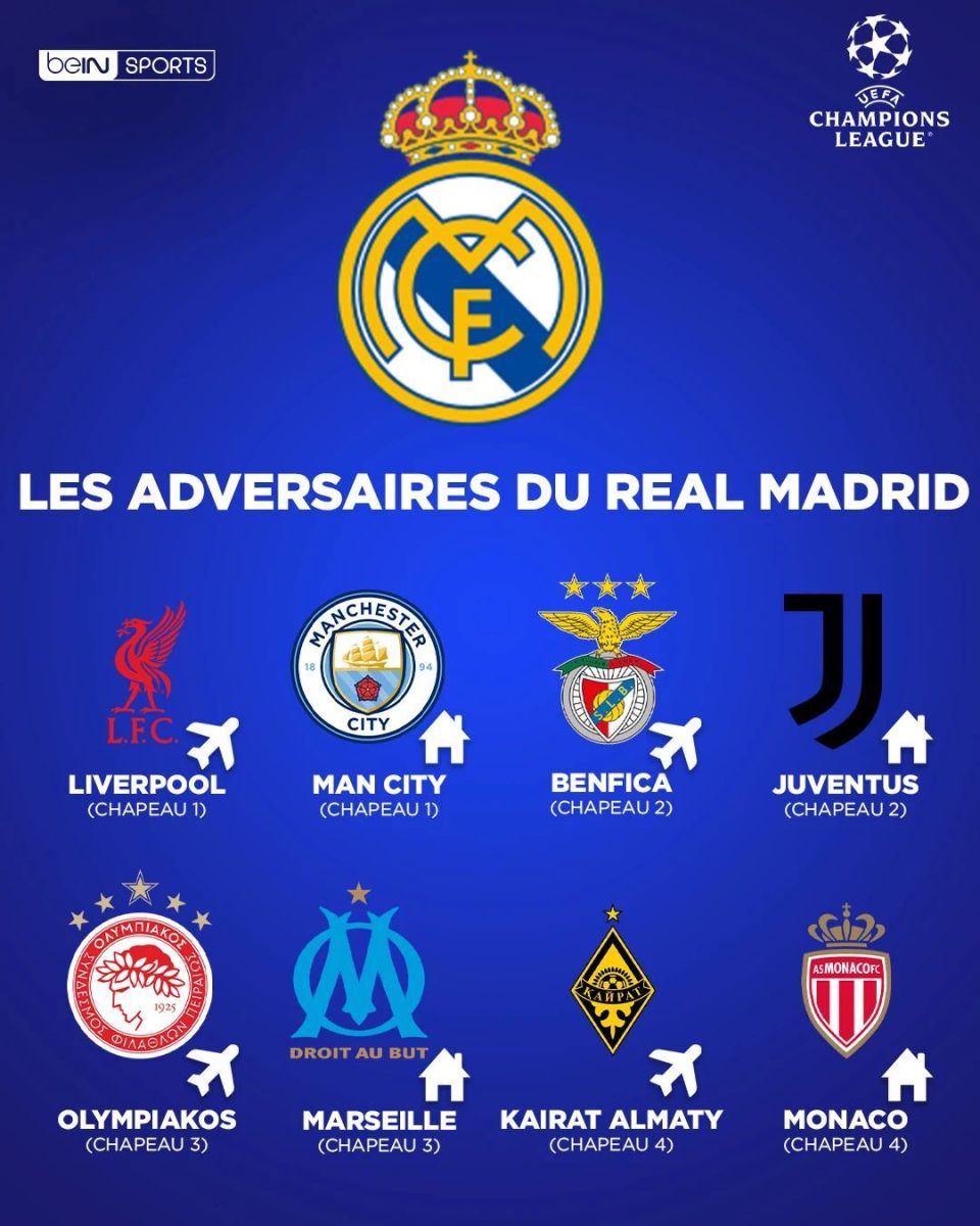 北京时间8月29日,25-26赛季欧冠联赛阶段抽签结果出炉。作为第一档球队,皇马在联赛阶段的8个对手分别是:曼城(主)、利物浦(客)、尤文图斯(主)、本菲卡(客)、马赛(主)、奥林匹亚科斯(客)、摩纳哥(主)、阿拉木图凯拉特(客)。